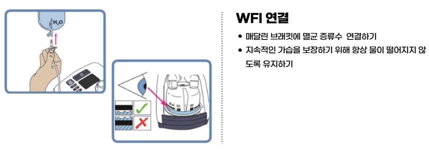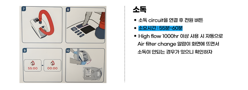 → 얼굴에 고정할 때 드레싱폼을 대주어 욕창을 예방한다 - Optiflow에 연결된 멸균 증류수백이 떨어지기 전에 교체한다